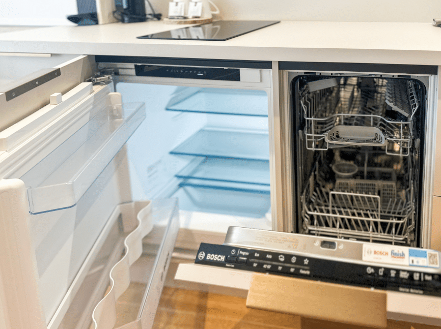 Les meubles sont conçus pour s’adapter exactement à la taille et à l’emplacement des appareils. Le design est harmonisé pour offrir une apparence élégante et fluide, sans ruptures visuelles.